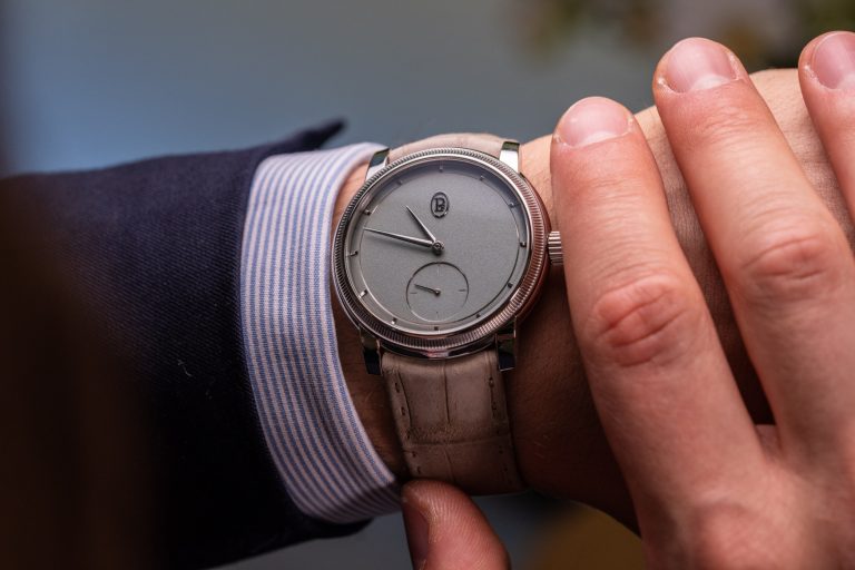 چقدر خوب است که دوباره نام دنیل راث در محافل ساعت‌سازی می‌چرخد، اینطور نیست؟ به لطف مدیریت La Fabrique du Temps از گروه LVMH، قاب کلاسیک و محبوب Ellipsocurvex با ساعت‌هایی مانند این مدل کوکی دستی Extra Plat بازگشته است. در مقایسه با برادر طلای زرد خود، این یک نسخه محدود نیست و موتور بسیار زیبای DR002 (که با قاب هم هماهنگ است) را از طریق درب پشتی شیشه‌ای به نمایش می‌گذارد. در سمت صفحه، گیوشه راه‌راه خاکستری یک ترکیب عالی برای گرمای طلا است و پس‌زمینه ایده‌آلی برای دایره ساعت و دقیقه محسوب می‌شود. تنها چیزی که احتمالاً به تغییر نیاز دارد، بند آن است – برای مثال، روی یک بند چرم تمساح مشکی، Extra Plat می‌تواند بهترین تاکسیدوها را همراهی کند.