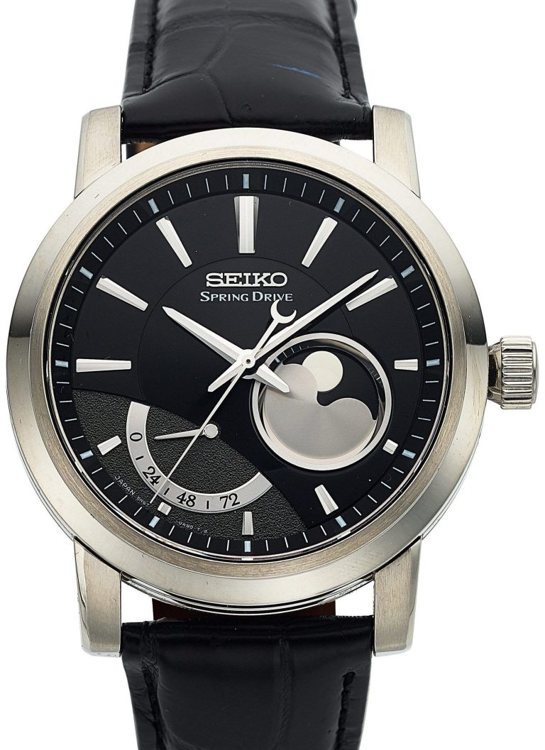 اسپرینگ درایو با بسیاری از پیچیدگی‌ها (Complications) در برندهای مختلف سیکو همراه شده است؛ از جمله کرنوگراف، GMT، کرنوگراف GMT و حتی تکرارکننده دقیقه (Minute Repeater). اما به ندرت دیده‌ایم که اسپرینگ درایو با نمایشگر فاز ماه (Moonphase) ترکیب شود. ساعت سیکو SNR017 در سال ۲۰۰۸ به عنوان یک نسخه محدود ۲۰۰ عددی عرضه شد و هم نمایشگر فاز ماه و هم نشانگر ذخیره انرژی را روی صفحه خود داشت. این ساعت از جنس استیل ضدزنگ با قطر ۴۲ میلی‌متر، دارای یک قاب جالب «سه تکه» با فرمی شبه‌پله‌ای و جذاب است.