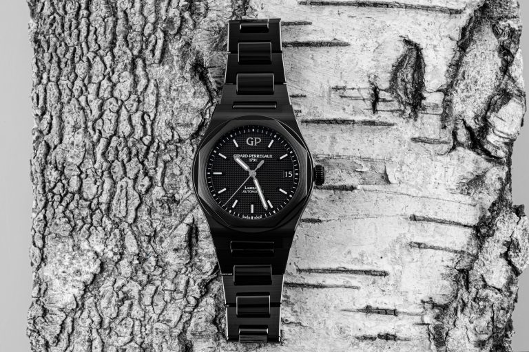 Girard-Perregaux Laureato شیک به رنگ مشکی – بدنه سرامیکی، قاب هشت ضلعی و بافت ظریف صفحه ساعت