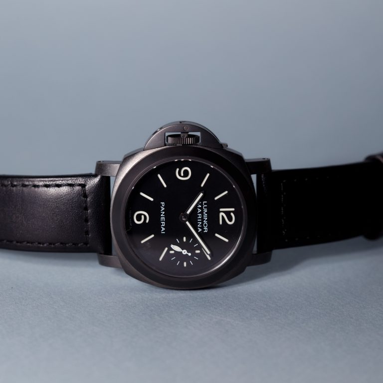 محافظ تاج چشمگیر و طراحی Destro برای افراد چپ دست – ساعت Panerai Luminor Marina با رنگ مشکی، تأثیر زیادی میزاره.