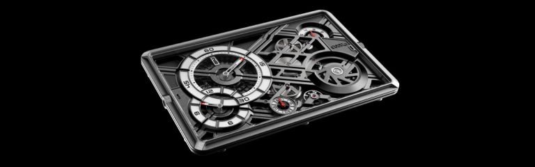 همین اشتیاق محسوس، الهام‌بخش جدیدترین پروژه کد ۴۱ یعنی «مِکاسکیپ» (Mecascape) شده (اسمی که از عبارت «منظره مکانیکی» گرفته شده). نتیجه، محصولی به طرز شگفت‌انگیزی خاص و اصیله که توصیفش هم کمی سخته. این وسیله که تقریباً هم‌اندازه و هم‌شکل یک گوشی هوشمنده، ترکیبی عجیب و غریب از یک ساعت رومیزی، یک ساعت جیبی و یک اثر هنری آینده‌نگرانه (Objet d’art) است. اما منطق اصلی پشت این تغییر شکل و فرمت این بود که به موتور اسکلتونایز شده، یک بوم نقاشی بزرگ‌تر برای درخشیدن و خودنمایی داده بشه.