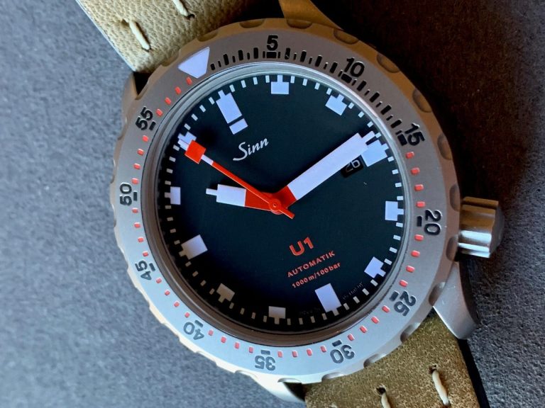 ساعت Sinn U1 یکی از شناخته‌شده‌ترین و معتبرترین ساعت‌های غواصی امروزی به حساب میاد. با صفحه کاربردی و مینیمالش که حس و حال سبک باوهاوس رو داره، عقربه‌های سرنگی شکل و نمادینش، و قاب ساخته شده از فولاد زیردریایی تگیمنت (Tegiment) با پرداخت بِید-بِلَست (bead-blasted)، این ساعت یه ابزار کاملاً اصیل و کارآمده. مقاومت در برابر آب تا عمق ۱۰۰۰ متر (یا ۱۰۰ بار فشار) هم گواه این ماجراست.
