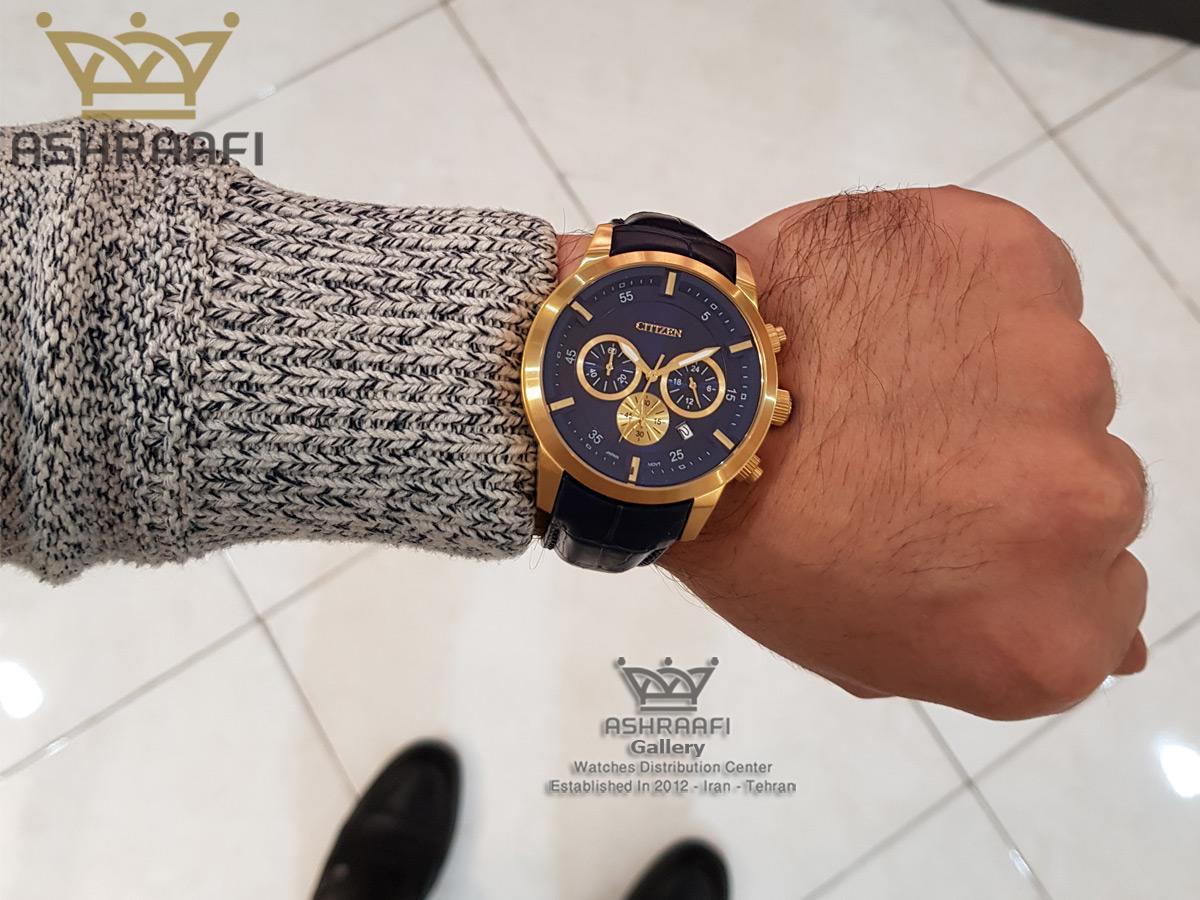 ساعت سورمه ای تیره سیتیزن با قاب طلایی، Citizen 18135G یک ساعت کرنوگراف با قابلیت نمایش تاریخ می‌باشد، بدنه محصول از جنس استیل درجه یک می‌باشد و به صورت کلی کیفیت کار بسیار خوب است.