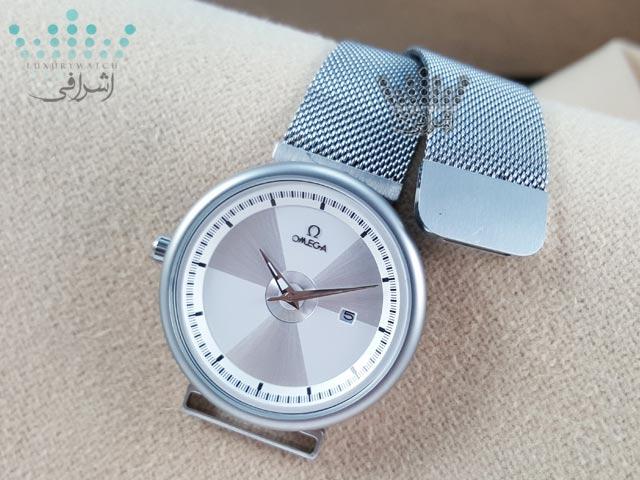 ساعت اسپرت زنانه و مردانه امگا، این محصول به واسطه ابعاد و ظاهر خاص هم برای آقایان هم برای بانوان قابل استفاده می‌باشد، جهت مطالعه معرفی این محصول به لینک محصول مشابه مراجعه بفرمایید (تنها تفاوت محصول مذکور با این مورد این است که این ساعت بند حصیری می‌باشد).