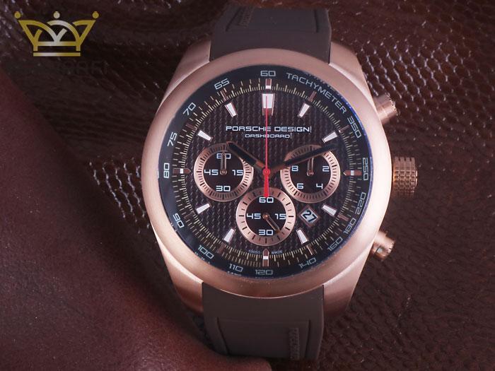 رنگ اصلی تشکیل دهنده ساعت پورشه داشبورد قهوه‌ای می‌باشد که کاملا با بدنه رزگلدش سازگار است و به زیبایی ساعت کمک شایانی کرده.