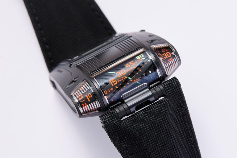 مدل HM3 “Frog” (قورباغه) یک نمونه‌ی دیگه از اینه که تخیل در ساعت‌سازی تا کجا می‌تونه پیش بره. وقتی از چشم‌انداز سال ۲۰۲۴ به گذشته نگاه می‌کنیم، این ساعت یه جورایی سرزنشی برای رویکرد کلی ریسک‌گریز و کمبود تخیلیه که در بسیاری از ساعت‌های مدرن می‌بینیم. اینکه تشخیص زمان روی اون به شدت سخته، اصلاً مهم نیست؛ ماشین‌های هورولوژیکال بهترین نمونه از این هستن که اگه به جای پرسیدن «چرا؟»، بپرسید «چرا که نه؟»، چه اتفاقات خوبی می‌تونه بیفته.