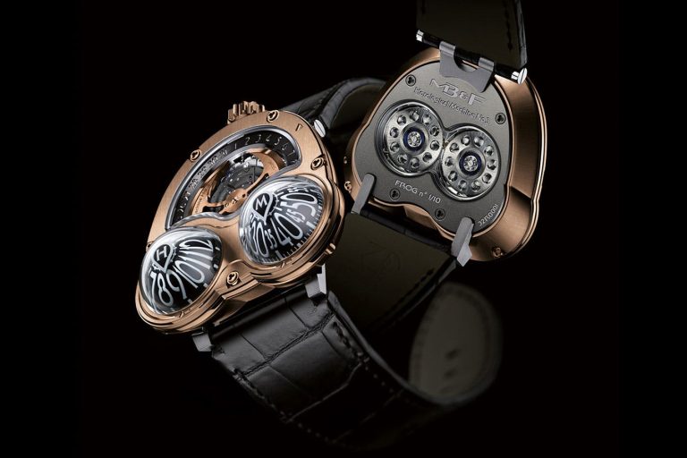 اولین ساعت MB&F که من از نزدیک دیدم، HM2 در سال ۲۰۰۸ بود. با مکس در موزه‌ی هنر مدرن (چه جای مناسبی!) ناهار خوردم و کاملاً شگفت‌زده شدم. HM2 یک شمش طلاست با نمایشگر ساعت پرشی لحظه‌ای، دقیقه‌شمار رتروگرید متحدالمرکز، تاریخ رتروگرید، نمایشگر فاز ماه دو نیم‌کره‌ای و کوک اتوماتیک، روی یک روتور مرکزی به شکل تبر جنگی انیمه‌های ژاپنی (مانگا) که روی یک موتور پایه از برند Girard-Perregaux ساخته شده بود.