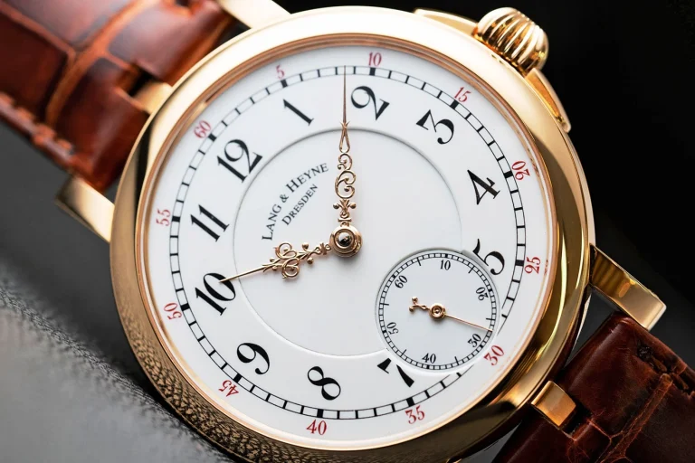 لنگ اند هاین (Lang & Heyne) با ساعت خیره‌کننده Friedrich August I و عقربه‌های لویی پانزدهمش دوباره به لیست ما باز‌می‌گردد. دقیقاً مشابه عقربه‌های کلیسایی این برند و عقربه فلور د لی که در چاپک دیدیم، این عقربه‌های سبک پادشاهی امروزه به ندرت در خارج از جعبه‌ی ساعت‌های جیبی یافت می‌شوند. شما اغلب نمونه‌های ارزان‌قیمت، پرس‌شده و فلزی آن‌ها را پیدا می‌کنید که برای قطعاتِ تعویضی ساعت‌های جیبی قدیمی یا ساعت‌های سرهم‌بندی‌شده (Frankenwatches) استفاده می‌شوند؛ و این واقعاً جای تاسف دارد، زیرا وقتی این سبک به درستی و اصولی اجرا شود (مثل عقربه‌های دست‌تراش لنگ اند هاین)، روی یک ساعت درخور، ظاهری به واقع مسحورکننده خلق می‌کند.