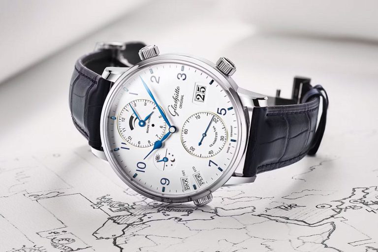 تلاش‌های واقعی برای حل مکانیکی مشکل DST خیلی کم و نادره. یک نمونه‌ی بسیار خاص، ساعت Senator Cosmopolite از برند «گلسهوته اوریجینال» (Glashütte Original) هست. این ساعت، زمان مبدأ رو در یک صفحه‌ی فرعی روی ساعت ۱۲ و زمان محلی رو با عقربه‌های مرکزی نشون می‌ده. این ساعت به معنای دقیق کلمه یک ورلد تایمر نیست، اما یک ساعت GMT/دو زمانه است که دوتا قابلیت جذاب و منحصر به فرد داره. اول اینکه عقربه‌ی ساعت‌شمار محلی رو می‌شه در بازه‌های ۱۵ دقیقه‌ای به جلو یا عقب حرکت داد. این یعنی برخلاف تقریباً تمام ساعت‌های GMT دیگه، شما می‌تونید زمان محلی رو برای تمام ۳۷ منطقه‌ی زمانی تنظیم کنید، حتی اون‌هایی که اختلافشون با ساعت گرینویچ یک ساعت کامل نیست.